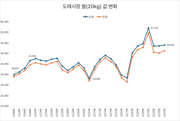 최근 20년간 쌀 값 그래프는 이 주소가 편할 것 같고 http://t1.daumcdn.net/brunch/service/user/1UwG/image/G0X1Atz7-vvkfiAyvQschFrGvbQ.png