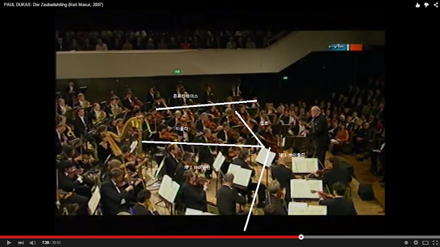 저는 교향악단 연주회에 일년에 몇번씩 가는데 (꽤 오랫동안 그랬고) 현악기만 악보를 같이 보고 다른 악기들은 악보를 같이 안본다는 생각을 안해봤습니다. 그리고 그냥 오른쪽 그리고 앞쪽은 연주 잘하는 사람인 것으로 알았는데, 관악기 수석이 나란히 앉는다는 것도 재미있고. 이번 주말에도 가기로 했는데 다시 한번 유심히 봐야겠습니다. 그리고 위 오케스트라에 섹소폰이 앉아 있는데 아주 드문일이지요? 라벨은 섹소폰을 넣기는 하는데 섹소폰은 (쌍티나는) 재즈 악기라 아니면 색소폰 생긴지 얼마 안되어 오케스트라 곡에는 잘 들어가지 않는데. 질문 받으신다는데 이럴때 좋은 질문 하나 하고 싶지만, 당장 궁금한 점은 없네요. 아, 돈질문 하나 하지요. (음악 들으면서 치고 있는데, 생각 났어요) 예를 들어 한국내 오케스트라 단원중 오케스트라에서 주는 월급만으로 먹고 살 수 있는 사람은 얼마나 될까요? (너무 이상한 질문 같다)
