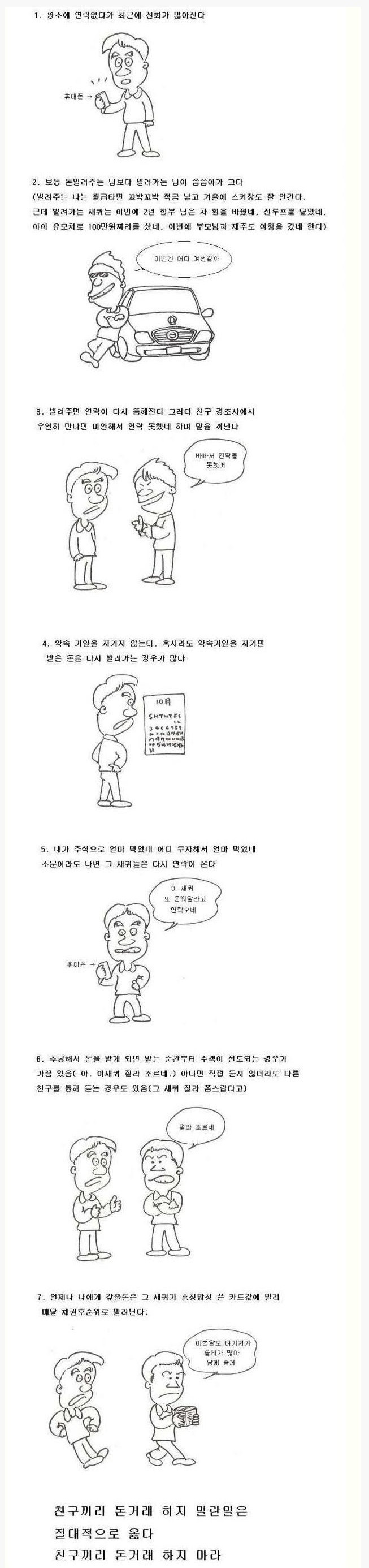 전 무작정 친구랑 돈거래 하지 말라는 말 자체를 안 믿긴합니다. 저런 친구가 100%인것도 아닌데.. 글쎄요. 전 가까운사람들과 돈거래 잘해도 문제가 없더군요.