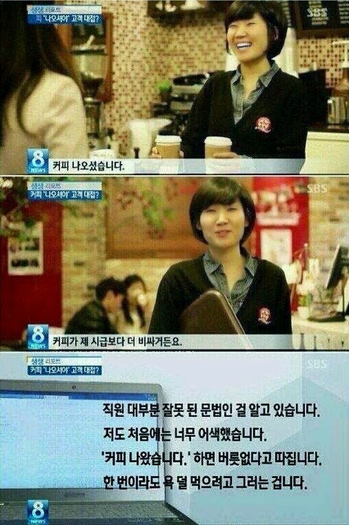 사물존대한다고 직원에게 뭐라고 컴플레인 걸면 커피전문점 직원들만 불쌍해지는게 아닐까요?