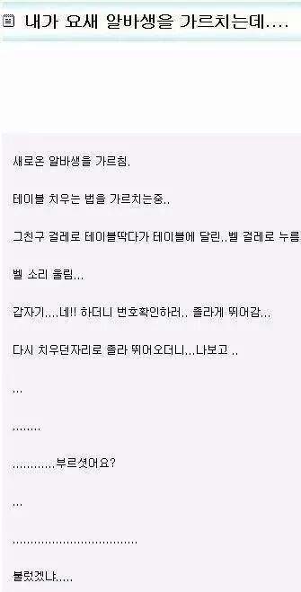 알바생 귀엽고 어쩌고를 떠나서..걸레로 테이블 닦는 것만 눈에 들어와요...