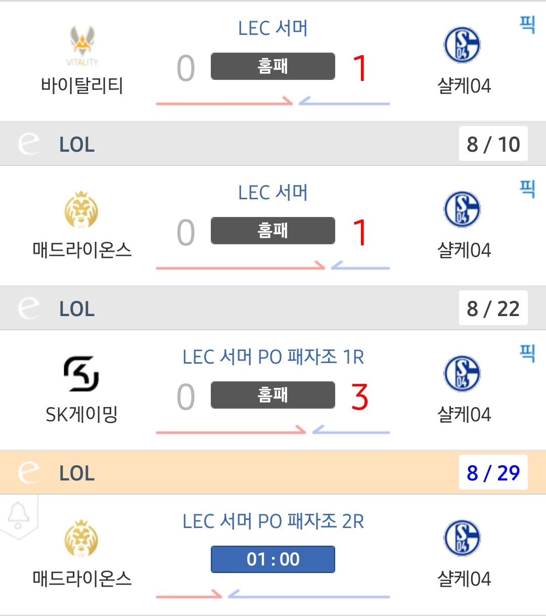 샬케를 보면 롤에 감독이 중요하지 않다는 말은 도저히 할수가 없어요. 딜런팔코의 성적 2016 임모탈즈 - 신생팀을 가지고 리그는 1등/2등. 플레이오프때 못 해서 2연 3등에 롤드컵 선발전 최강자 C9에 패해 아쉽게 탈락 2017,2018 프나틱 - LEC 최강자 시절, 2018 롤드컵 준우승 2019 샬케 - 롤드컵 선발전에서 스플라이스에게 져서 탈락 2020 샬케 - 매드 (2019 졌던 스플라이스) 에게 이기면 롤드컵 진출, 지면 탈락 이렇게 보니까 지난해랑 똑같은 단두대 매치업이 되어버렸네요.