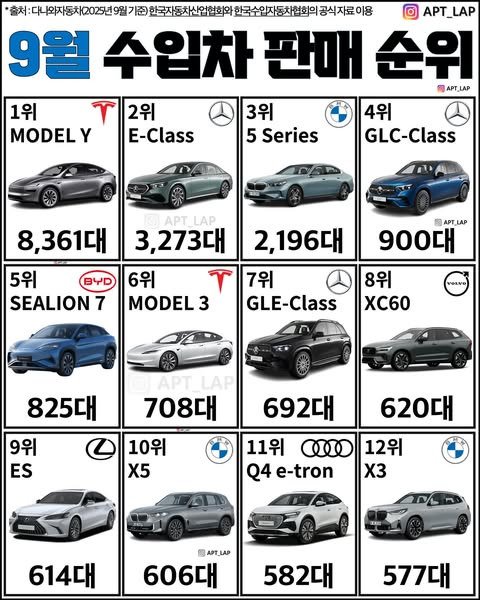 테슬라는 국산차 판매량 포함해도 거의 순위권 안에 들겠네요.