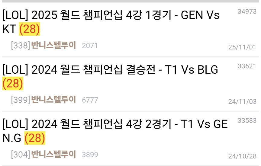 520659 [LOL] 역대 월즈 bo5 역배승 순위 [13] 짱구2725 25/11/01 2725