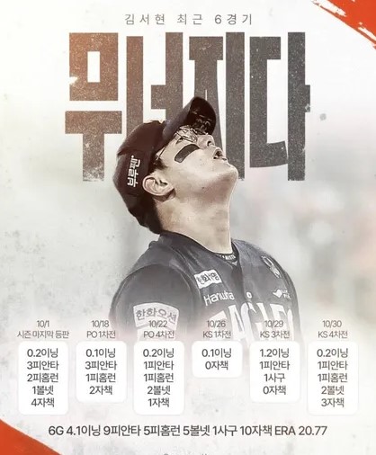 애초에 풀타임 첫 시즌이고, 체력 떨어진거죠. 감독, 코치들이 미리 대비했어야죠. 프로 경력 선배인 문동주도 아직 풀타임을 못 뛰고 있는걸요...
