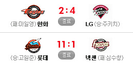[한화 2 (종료) 4 L G] [롯데 11 (종료) 1 넥센] 응원 & 중계 하시느라 수고하셨습니다.. 편안하고 섹시한 밤 되세요..