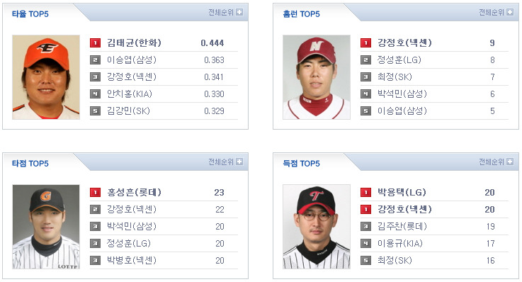 [넥센 4 (5회초) 2 S K] [롯데 7 (5회초) 0 한화] - 강민호 투런 쳤네요.. [두산 0 (6회말) 1 KIA]