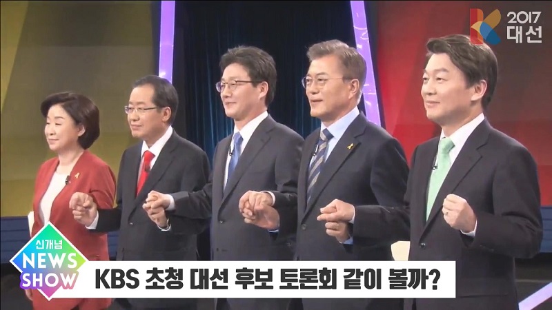 문재인 후보와 진보, 보수의 패널 안철수, 홍준표, 유승민, 심상정 네분을 모시고 토론을 하겠습니다.