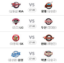 [삼성 0 (3회초) 50 넥센] [S K 0 (3회말) 1 한화] [KIA 0 (4회초) 1 롯데]