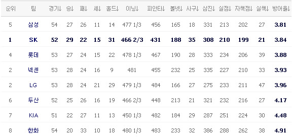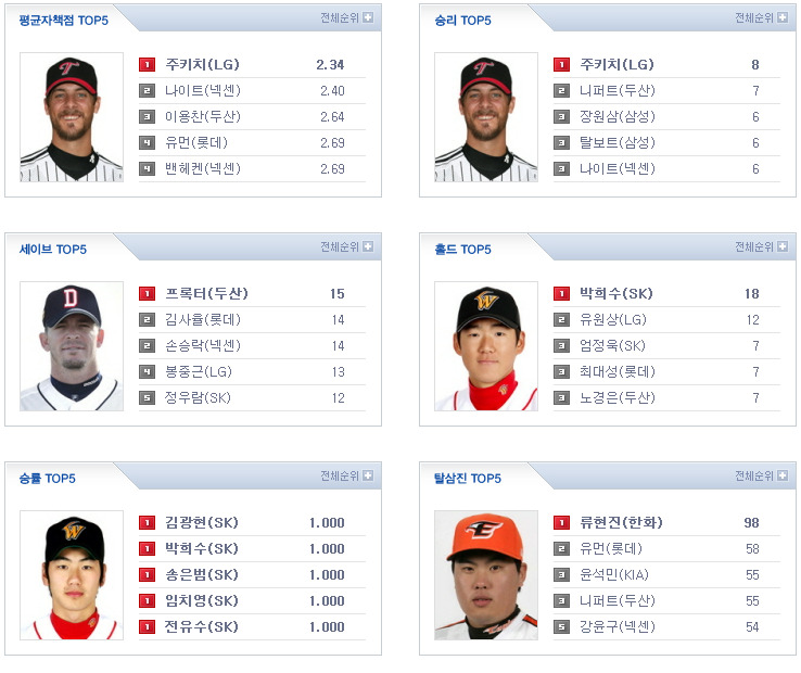 Dustin Nippert (6승 4패  3.03)                                                                                        이용훈 (5승 2패  3.02)