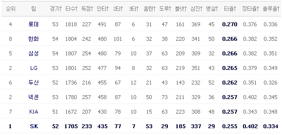1239 [야구] 2012년 06월 22일 불타는 금요일 <2012 팔도 프로야구> 불판.. # 3 (종료 + 팀 순위 + 선수별 기록) [268] k`2523 12/06/22 2523