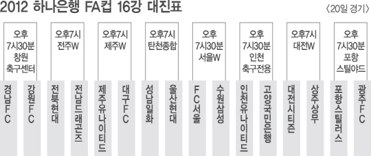 Subject [국축]2012 하나은행 FA컵 16강전 ; K리그 슈퍼매치, 전라더비, 인천 VS 고양