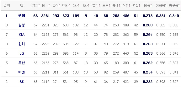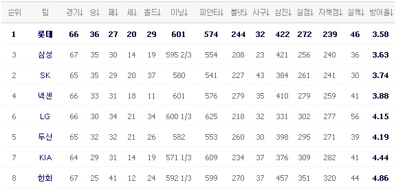 [두산 4 (9회말) 3 넥센] [S K 0 (9회초) 6 삼성] - SK는 한 점도 못 뽑고 지게 생겼군요 [한화 2 (8회말) 5 롯데]