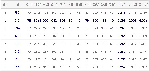 Subject [야구] 2012년 07월 03일 화요일 <2012 팔도 프로야구> 불판.. # 2 (종료 + 팀 순위 + 선수별 기록)