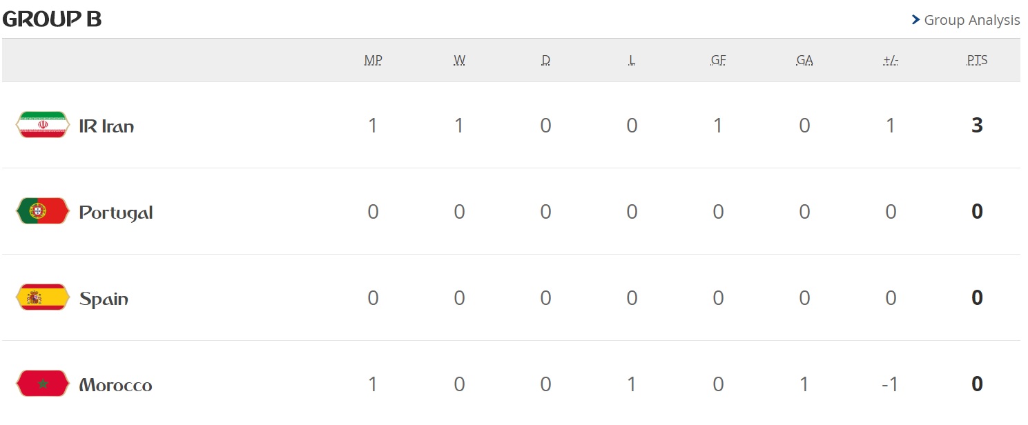 세상에 (시한부이긴 하지만) B조에서 이란이 1위라니!