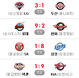 [잠실] 오늘 지고있는 팀들은 다 1점이네요