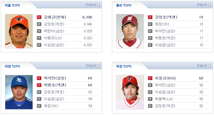 5. 박정권 (우익)      5. 최형우 (좌익)