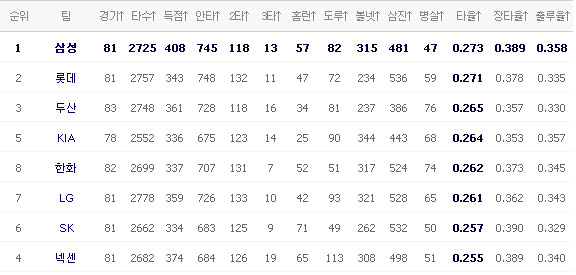 1342 [야구] 2012년 08월 03일 금요일 <2012 팔도 프로야구> 불판.. (종료 + 팀 순위 + 선수별 기록) [303] k`2661 12/08/03 2661