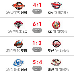 Subject [야구] 2012년 07월 27일 금요일 <2012 팔도 프로야구> 불판.. (종료 + 팀 순위 + 선수별 기록)