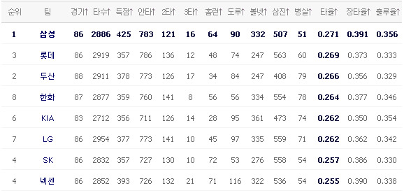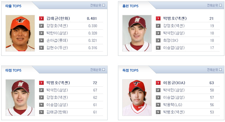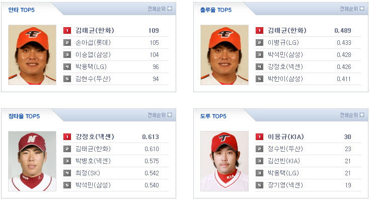 박병호가 홈런왕을 향해 힘차게 달려가고 있는 가운데 김태균은 신나게 타격왕을 향해 달리고 있네요