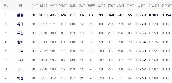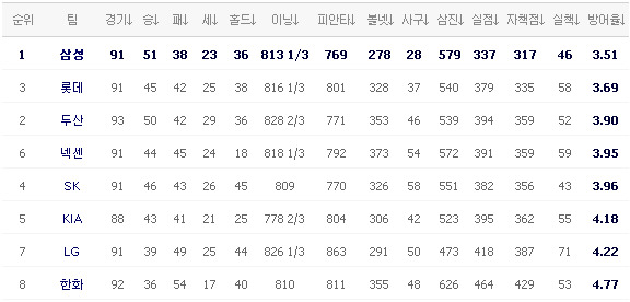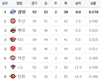 [삼성 6 (8회초) 5 S K] - SK가 따라붙네요.. [두산 3 (9회초) 1 한화] [넥센 0 (8회초) 2 KIA]