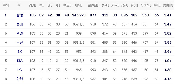 1사 2루 제구가 급흔들리는 소사 이지영 힛바이피치볼 조동찬 삼진 2사 2루 김상수타석 소사 직구로 삼진 3회초정리 박석민 홈런 최형우 2루타 강봉규 삼진 이지영 힛바이피치볼 조동찬 김상수 연속삼진 이번회 3k로 마무리 왜 무사 2루에서 한점을 내질못하는거시니.. -_-
