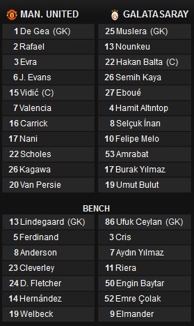 Chelsea 2 - 2 Juventus Shakhtar Donetsk 2 - 0 FC Nordsjaelland Bayern Munich 2 - 1 Valencia Lille 1 - 3 BATE Borisov Barcelona 3 - 2 Spartak Moscow Celtic 0 - 0 Benfica Braga 0 - 2 CFR Cluj Manchester U. 1 - 0 Galatasaray