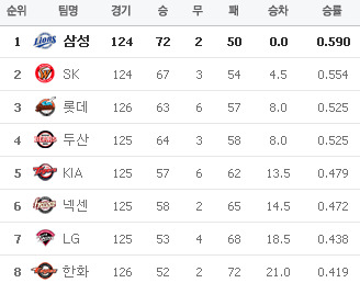 [넥센 0 (종료) 3 L G] [한화 1 (종료) 4 S K] [삼성 6 (종료) 2 롯데] 이렇게 오늘의 경기가 다 끝이 납니다.. 응원 & 중계 하시느라 수고 많으셨습니다.. 편안한 밤 되세요.