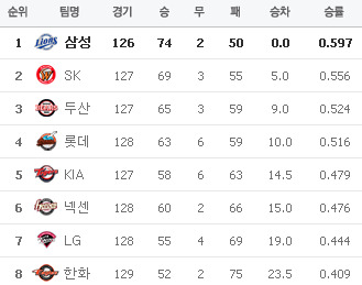 최근 10경기 1승 9패 이 자비로운 팀...어찌할꼬.. 2위와 3위도 양보하고 서재응에게는 선발 연속 무이닝 기록 헌납하고 지난번 황정립에 이어 이번에는 이종환에게 데뷔첫타석 홈런 크크크크크 서재응은 완봉을 하네요 추카드립니다