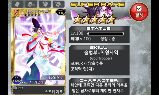 슬랩스가 나왔어야 했습니다. 슬랩스는 좋은 캐릭이지만 4성같은 스탯이죠. 스킬이야 좀 더 좋을거고 다만 저코로 굴릴수 있다는게 장점이 되어 슬랩스를 가진자와 슬랩스를 가지지 못한자는 코스트에서만 다소 차이가 날텐데 세이메이는 차이가 너무 납니다.