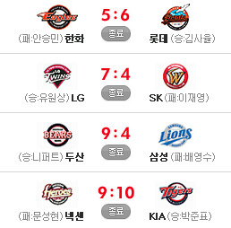 정말 맘에 안드는 점수죠. 뭐... 어쨌든 이겼으니 됐습니다. KIA는 오늘 경기로 테이블세터(9-1-2)의 막강함과 부활한 클린업을 보여줬고 불펜은 여전히 미지수지만... 클로저는 믿어도 될 것 같다는 희망을 보여주네요.