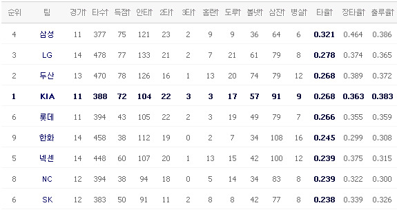 야구에 너무 밀리는데다 체력문제인지 뒤로갈수록 경기력고 별로고 .. 애초에 4할 턱걸이한팀이 플옵에 나가는 거 자체가 에러 -_-;