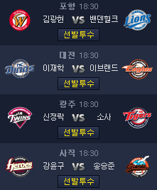 [L G 2 (2회말) 0 KIA] [S K 0 (3회초) 3 삼성] [넥센 0 (2회말) 0 롯데]