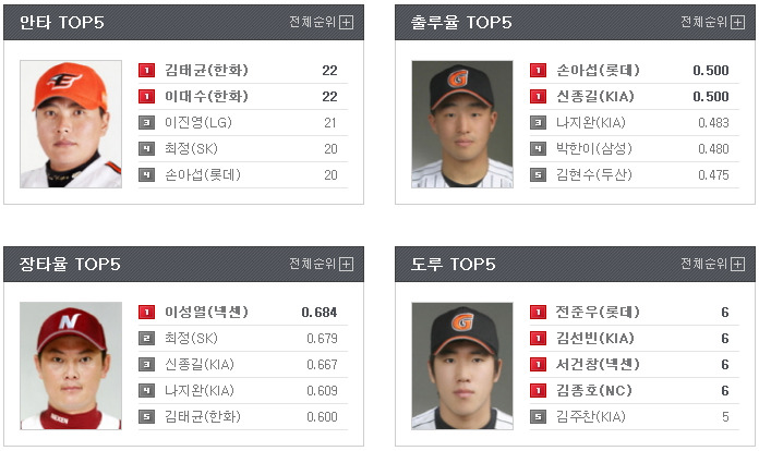 [한화(김경태) vs (니퍼트)두산] [NC(이태양) vs (김병현)넥센] [기아(김진우) vs (여건욱)SK] [롯데(유먼) vs (로드리게스)삼성] 내일 한화 선발은 김경태 선수. 처음 들어보는 선수인거 같네요. NC와의 혈투끝에 스윕을 가져갔는데 두산을 만나서 어떨지.. NC대 넥센의 트레이드가 있자마자 양팀간의 대결입니다. 더군다나 선발도 넥센 출신 이태양.. 오늘 대첩을 펼친 기아는 오늘 기분좋은 승리로 거두고 올라간 SK를 상대합니다. 롯데는 유먼을 내세워서 7연패를 끊을 수 있을지..