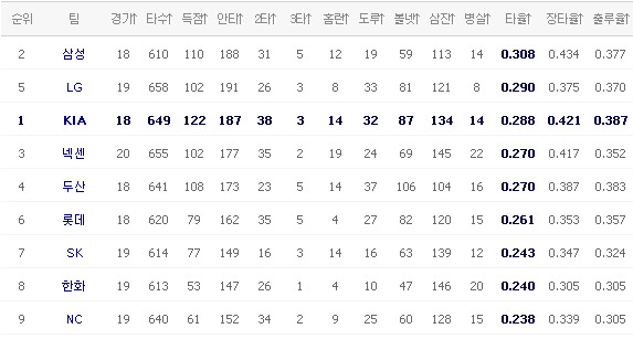 7. 김태완 (2 루)      7. 안치홍 (2 루)