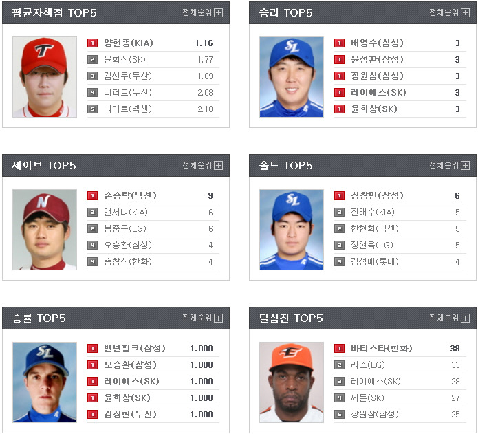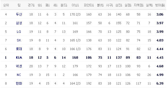 Aneury Rodriguez (0승 1패  2.13)                                                                                 양현종 (3승 0패  1.16)