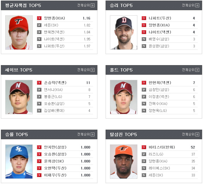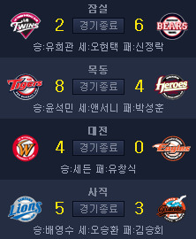 [LG(리즈) vs (노경은)두산] [KIA(소사) vs (나이트)넥센] [SK(윤희상) vs (안승민)한화] [삼성(벤덴헐크) vs (송승준)롯데]