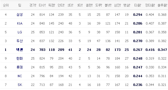 그나저나 딱 점수 낼때 내는 넥센하고 징그럽게 점수 못내는 기아하고 차이가 심하네요.