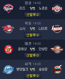[목동] 오늘 목동은 몇시까지 게임할지 미지수네요. 소사도 상태 안좋고 중간은 말할 것도 없는데.. =_=;;;; 기아 타선도 넥센 타선도 좋아보이니 원