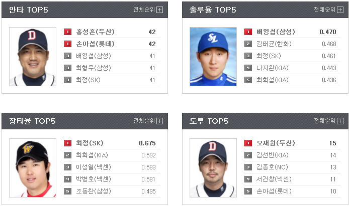 [두산 4 (8회말) 5 한화] [롯데 3 (7회초) 2 S K] [삼성 0 (1회말) 0 N C]