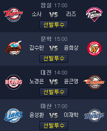 그래도 안승민 나오려나요? 잘하면 어제 유창식 내려가면서 콜업된 장성호와 트레이드로 들어온 송창현이 선발로 나올지도 모르겠네요