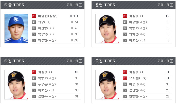3. 나성범 (중견)      3. 최   정 (3 루)