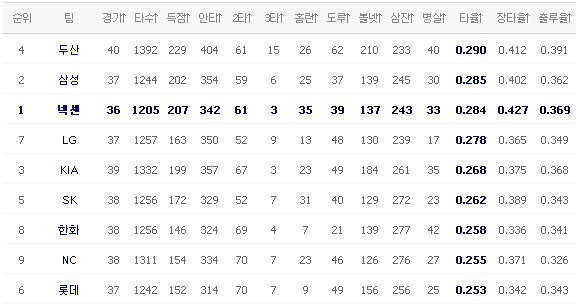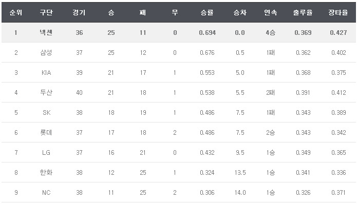 Subject [야구] 2013 한국 야쿠르트 : <7even 세븐 프로야구> 수요일 불판 # 1 (순위 + 기록)