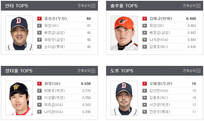 4. 박병호 (1 루)      4. 홍성흔 (지명)