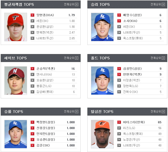 6. 모창민 (3 루)      6. 김원섭 (우익)