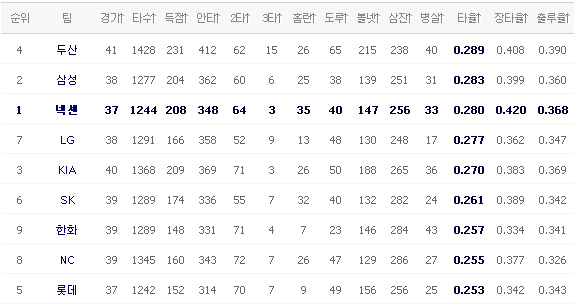 7. 박팡야 (1 루)      7. 김민성 (3 루)