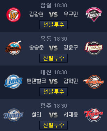 송승준 (1승 2패  4.13)                                                                                               강윤구 (3승 1패  3.82)