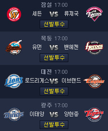[롯데 1 (3회말) 2 넥센] [삼성 0 (3회말) 1 한화] [N C 1 (3회초) 0 KIA]