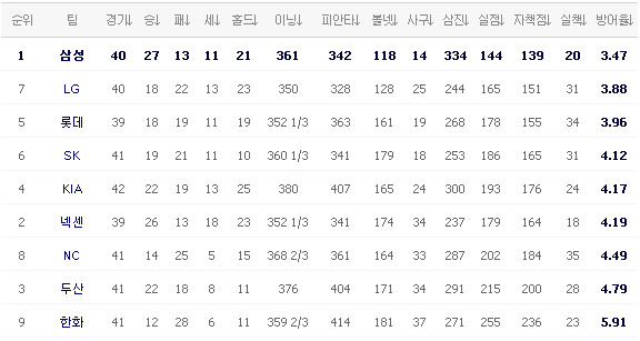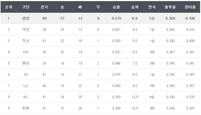 삼성과 넥센의 선두다툼이 점입가경이군요.