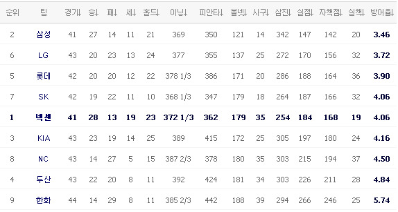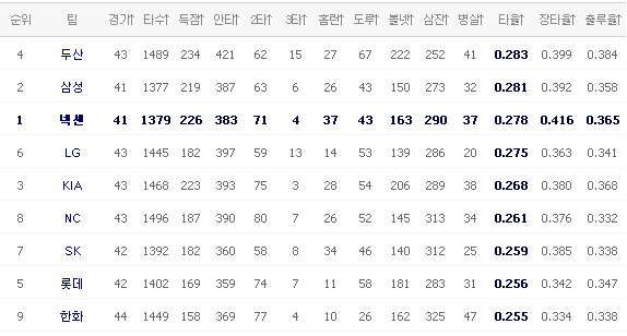 NC는 뒷문만 안정되면 이제 중위권 경쟁팀들에도 별로 꿀릴게 없어보이네요.